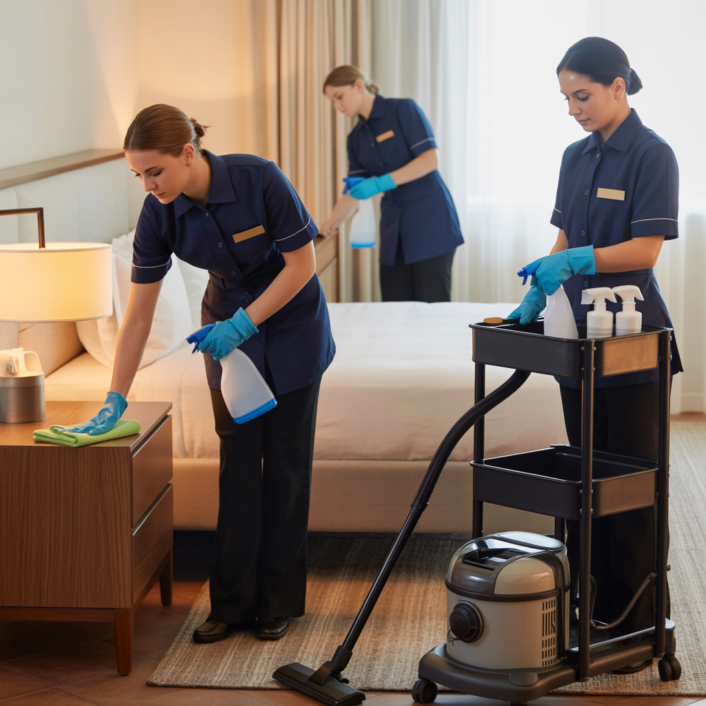 Our housekeeping staff follow systematic cleaning protocols using safe and effective methods, ensuring spotless, hygienic, and comfortable environments.
